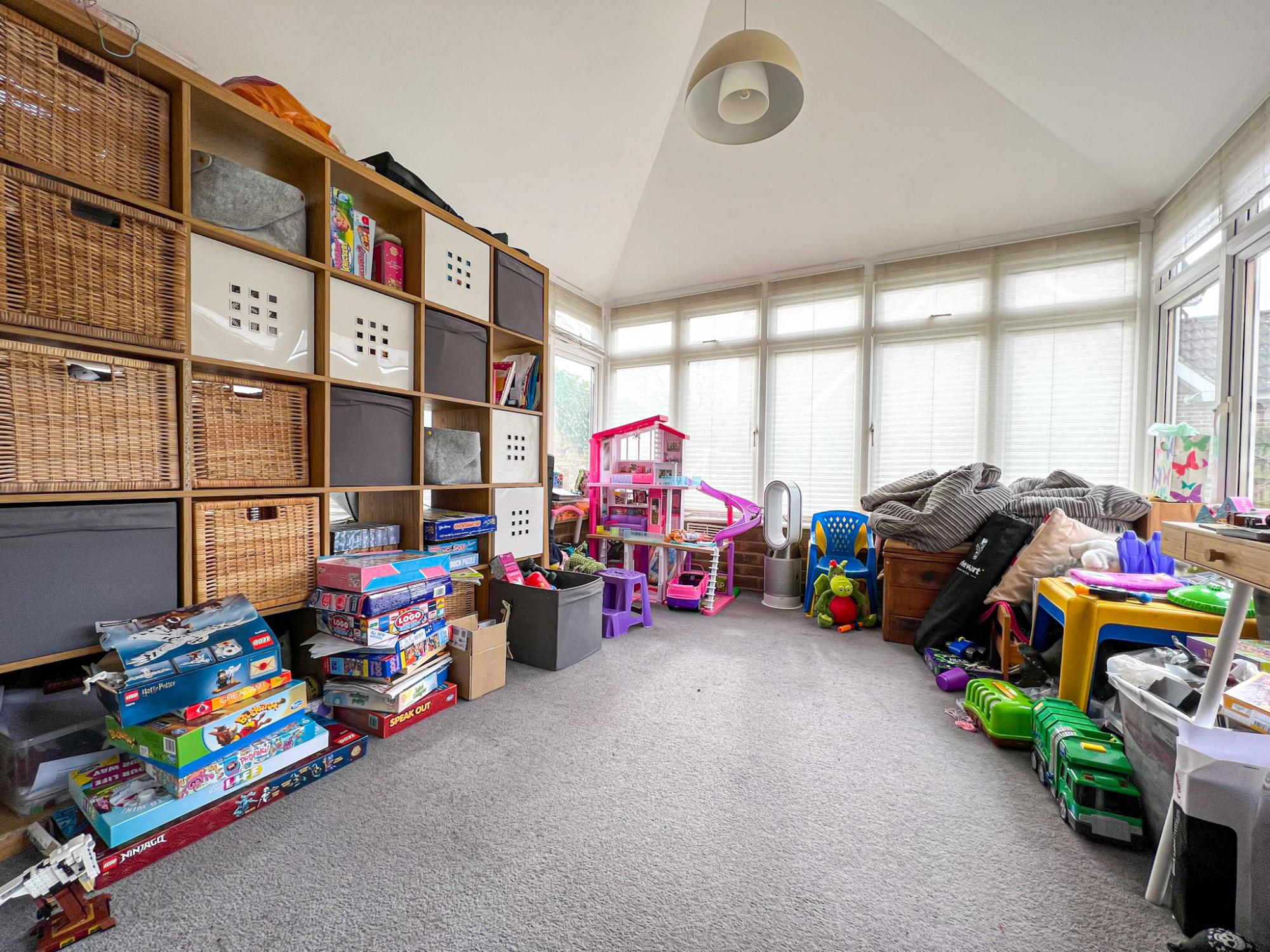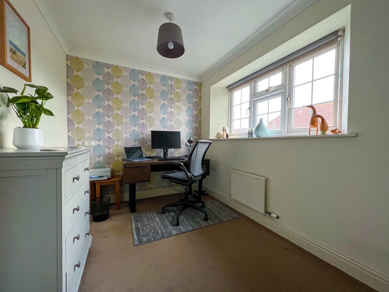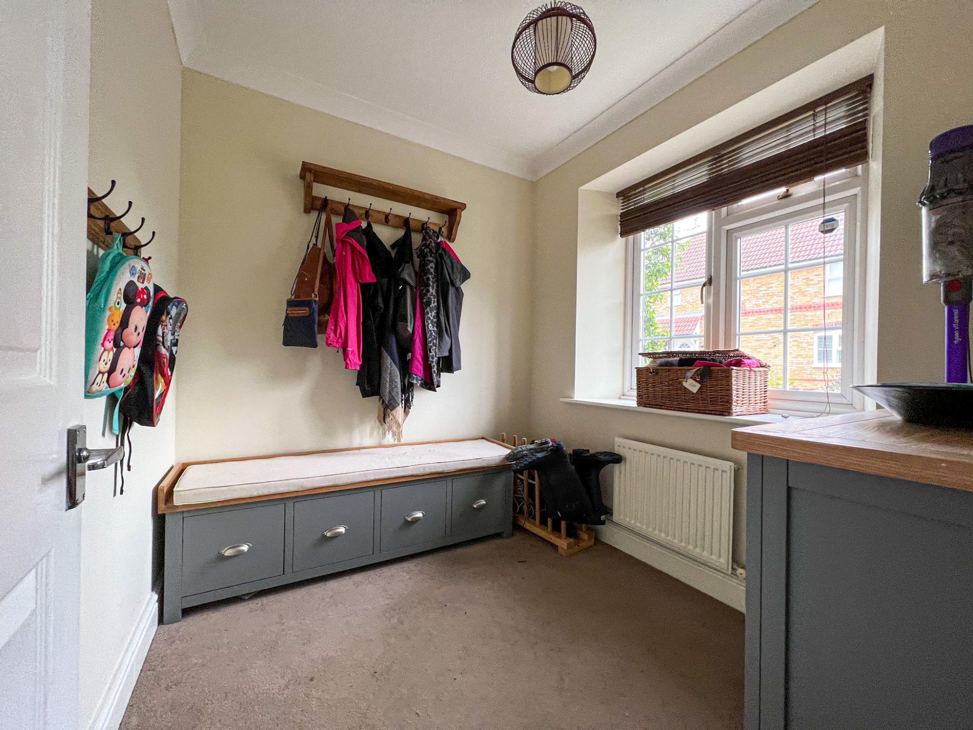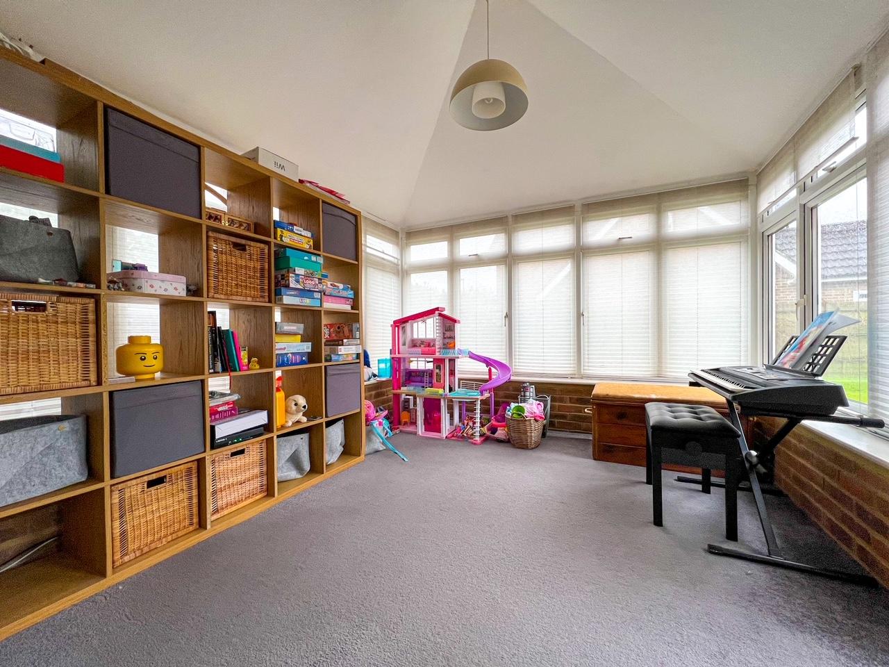 Tudors of East Molesey are pleased to offer for sale this rarely available, attractive flint faced Charles Church four double bedroom detached home occupying a corner plot within a quiet cul-de-sac in the Bishop Fox Development. Larger than the average four bedroom homes within the development the property benefits by having a comfortable living room, a conservatory, a study and a large modernized kitchen/breakfast room with separate utility room. Turning stairs with large pretty landing window leads to four bedrooms, master with en-suite and family bathroom. Externally there is a wide southerly garden and a detached double garage with off road parking.