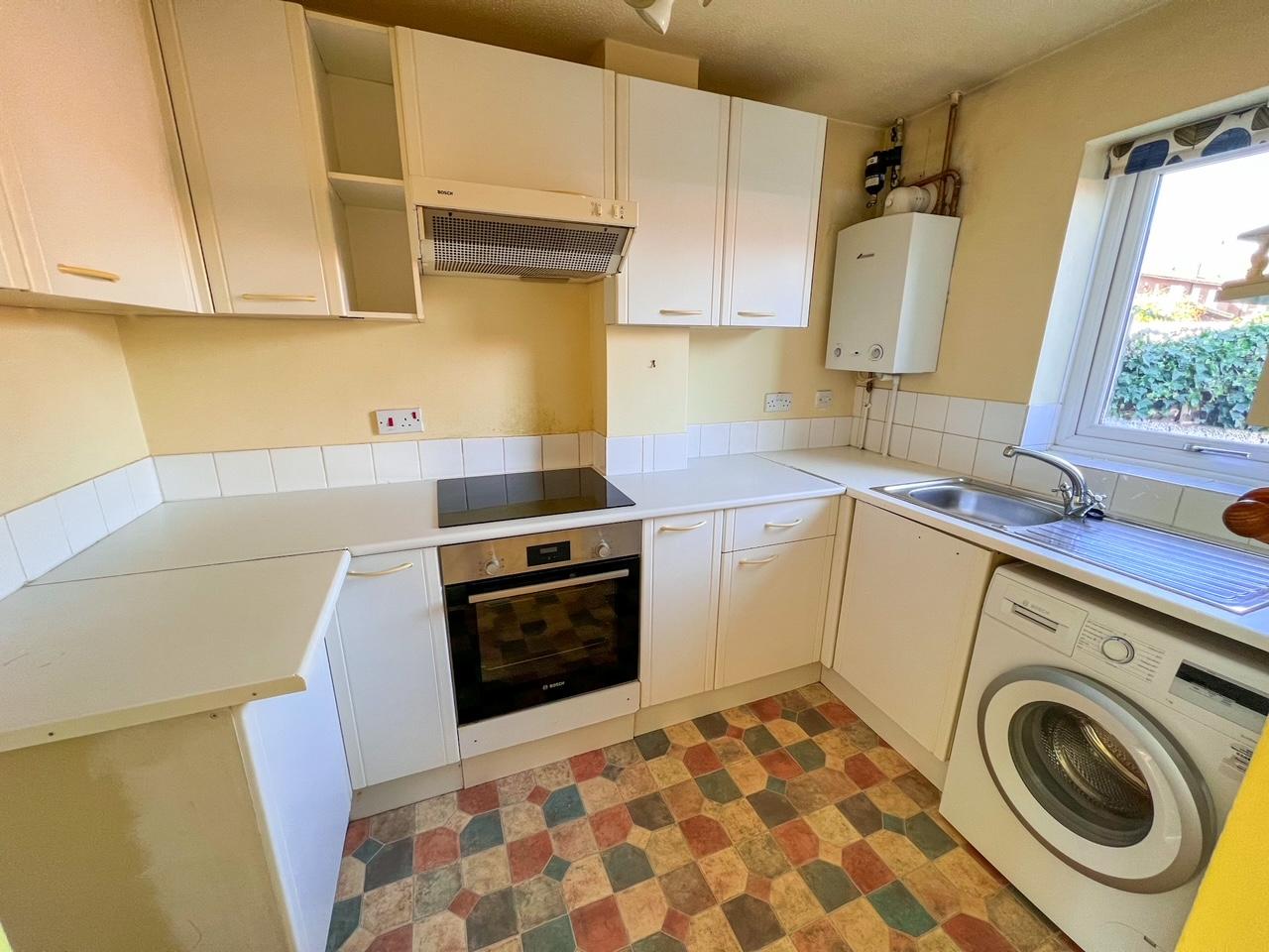 The accommodation comprises; an entrance hallway, a good sized, bright living room with an abundance of natural light. There is a stunning open plan white kitchen with many eye/base level units/cupboards with integrated induction hob with oven and space for washing machine and fridge/freezer. Stairs lead up to a generous double bedroom with built in sliding mirrored wardrobes and a door leading onto a bathroom with white suite and storage cupboard.