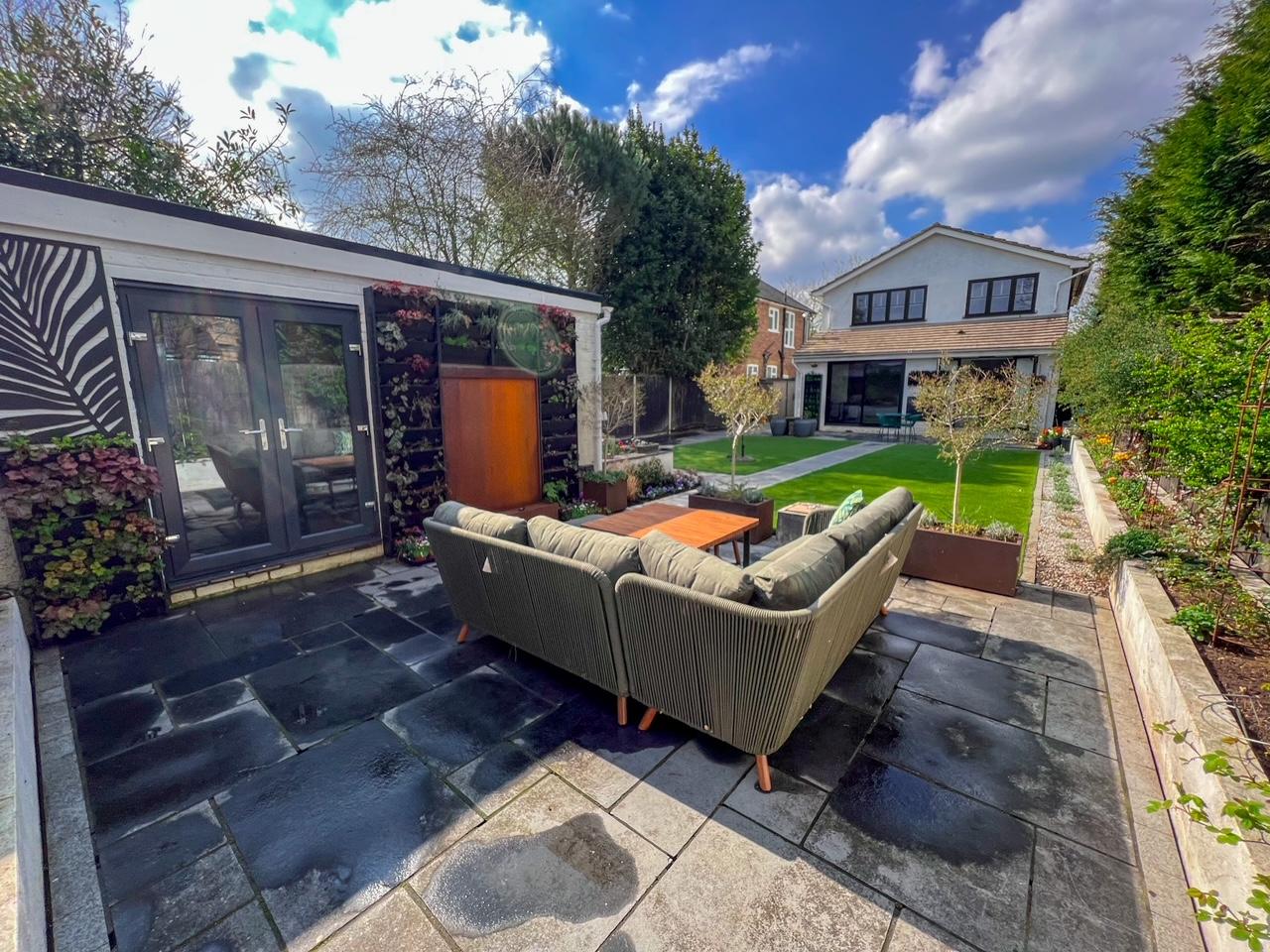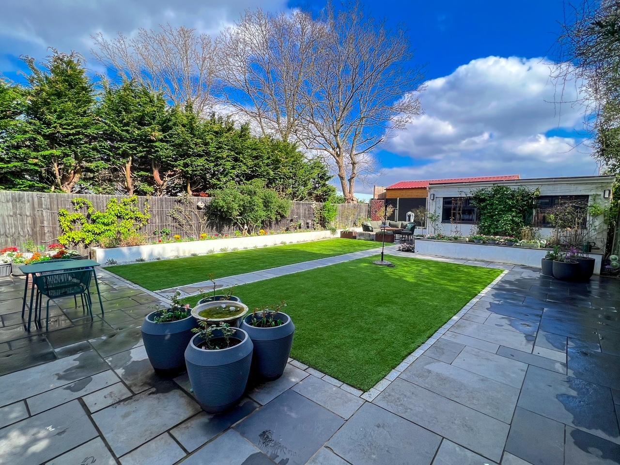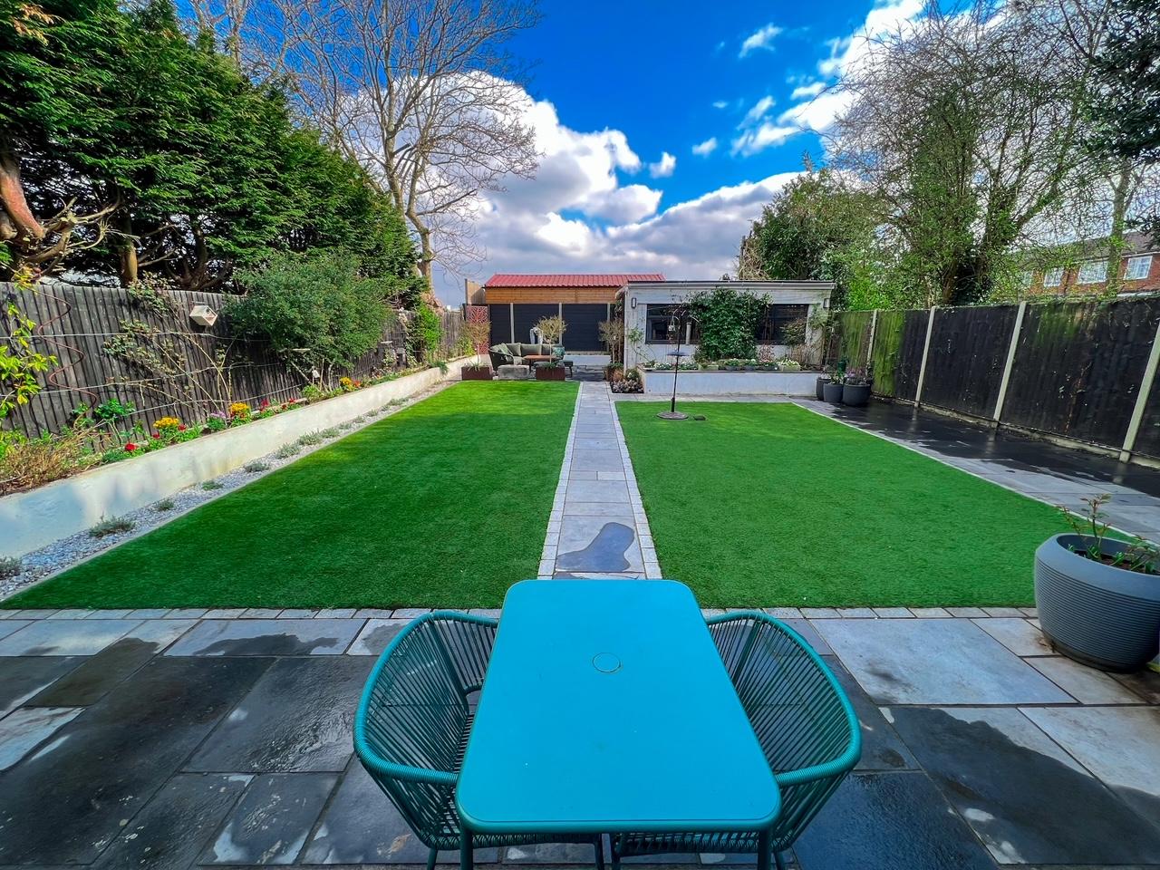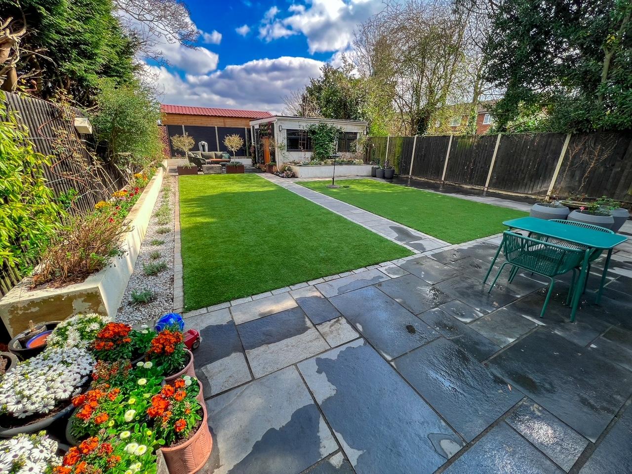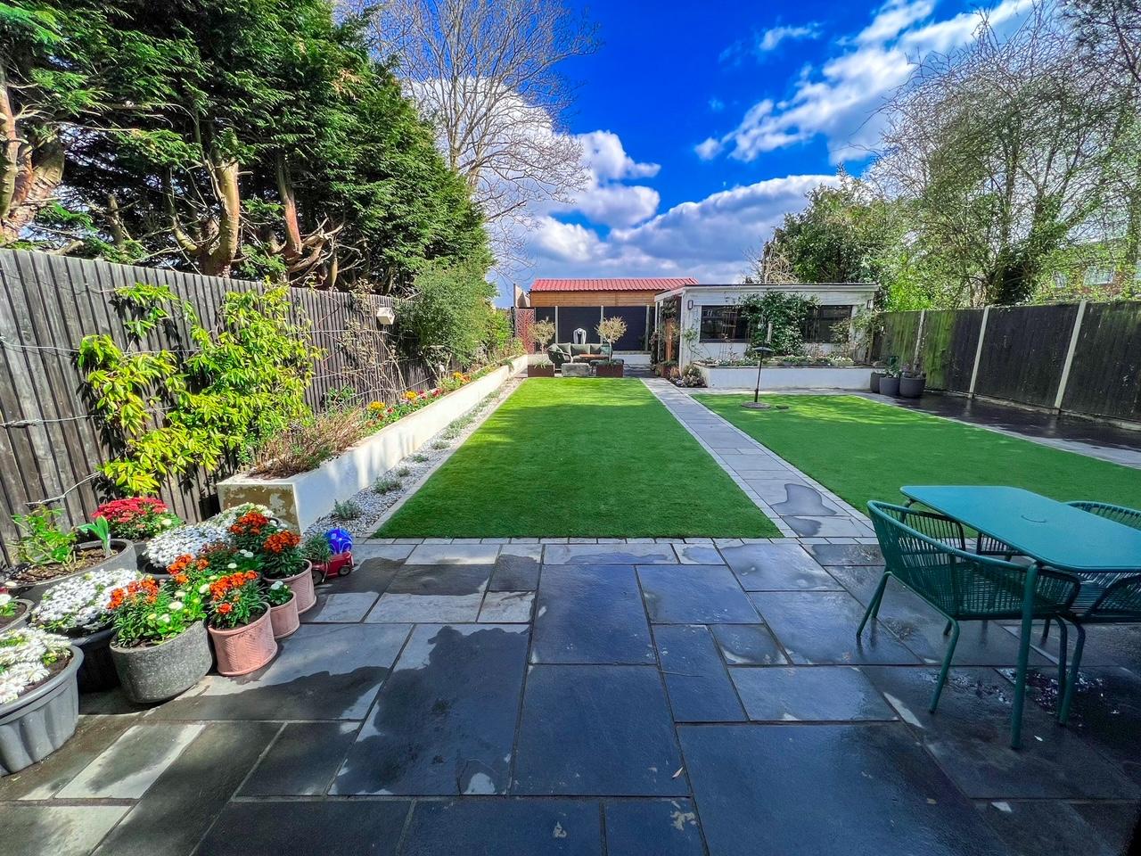 Externally there is a smartly presented, private garden with black limestone paving, artificial grass and mature well stocked border plants. There is a large patio area at the end of the garden which is ideal for dining and relaxing in the late evening sun (ideal area for entertaining) with a detached home gym with power/light and new roof – formerly a double garage. The property also offers a wide/double side access with smart gate – offering potential to further extend S.T.P.P.