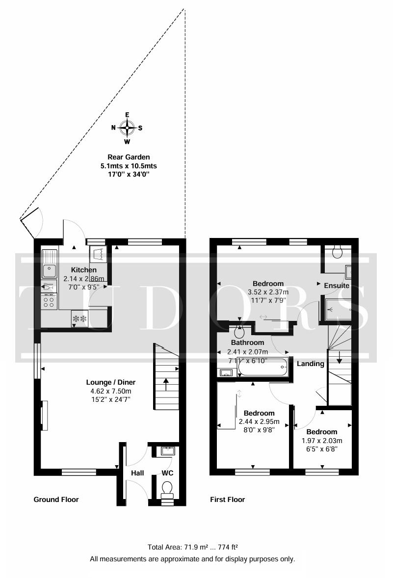 TUDORS are pleased to offer for sale this two double bedroom semi-detached home which is tucked away in the highly regarded Kings Chase development within easy reach of Hampton Court Station – Ideal for the commuter into London Waterloo, zone 6 – Oyster card. The property enjoys an abundance of natural light and offers excellent, well-balanced accommodation over all two floors. The current vendor has owned the property for the past 30 years and is now selling with NO ONWARD CHAIN.