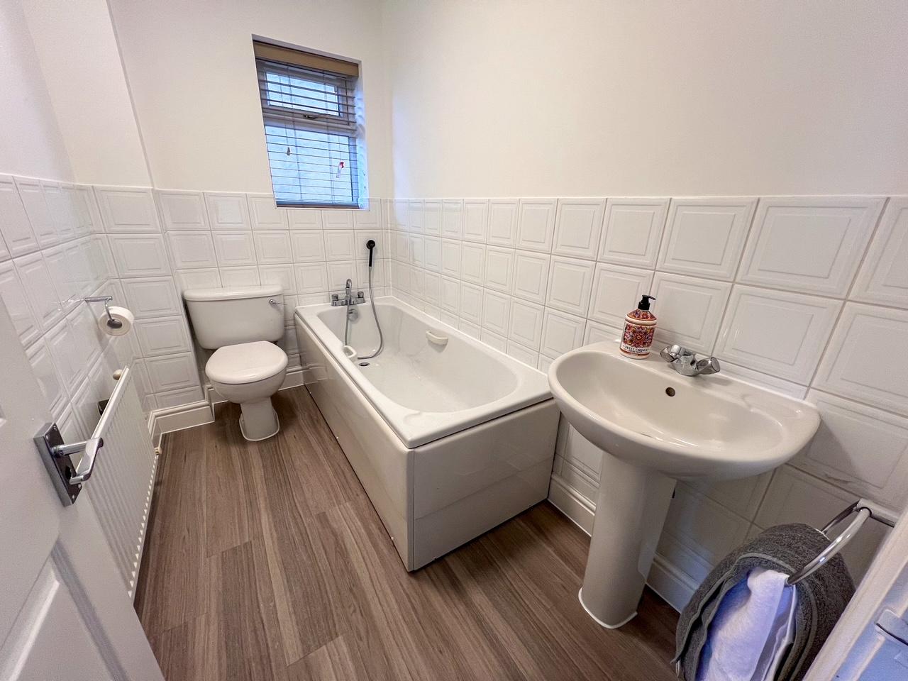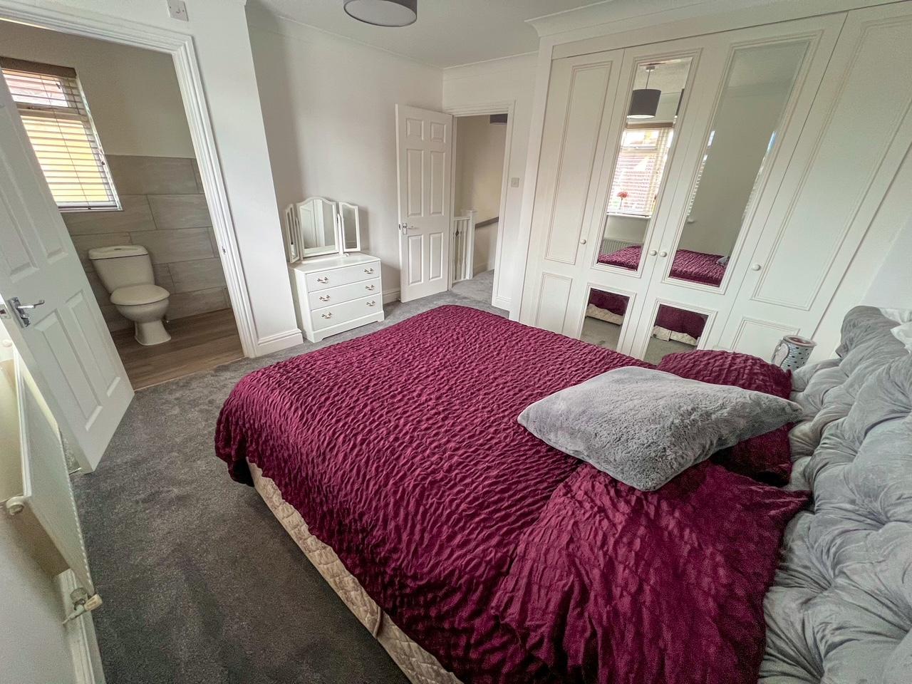 The accommodation comprises: a double-glazed entrance porch with front door opening onto a grand entrance hallway with modernised downstairs WC with sink. The hallway leads to a bright and spacious living room with front aspect window and archway leading to a dining room with patio doors opening onto the rear garden. The dining room leads to a modernised kitchen with stylish dark blue eye/base level kitchen units with under lighting and white worktops. There are integrated oven with gas hob and dishwasher and space for a dining table and space for a fridge/freezer with a door leading to a garage with power/light and up/over door with space for a washing machine and tumble dryer. The hallway leads up to a landing with access to three well proportioned bedrooms, master bedroom with built in wardrobes and a newly installed en-suite shower room with grey wall and floor tiles. There is also a family bathroom with white suite.