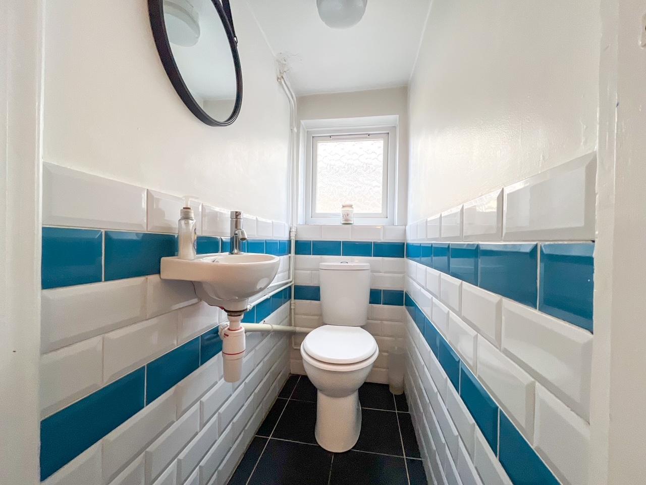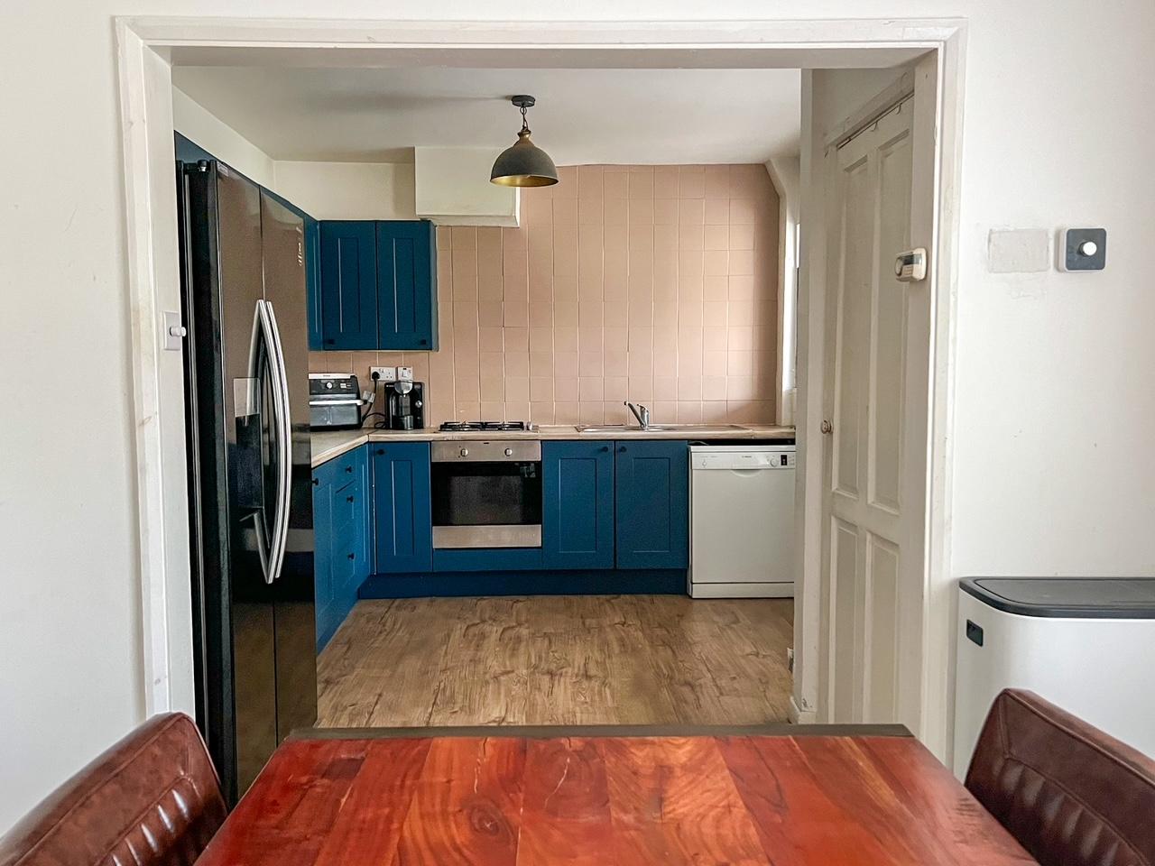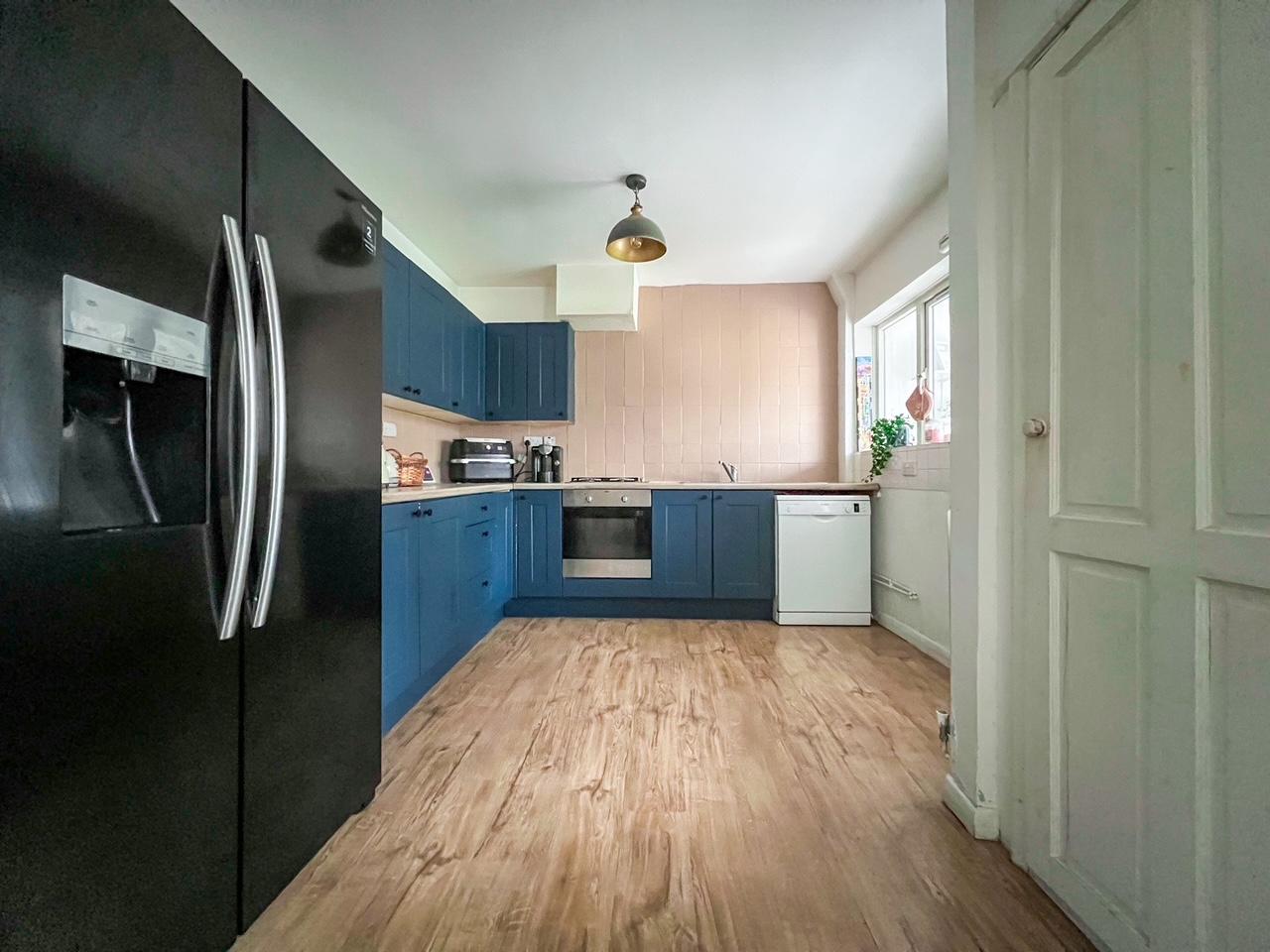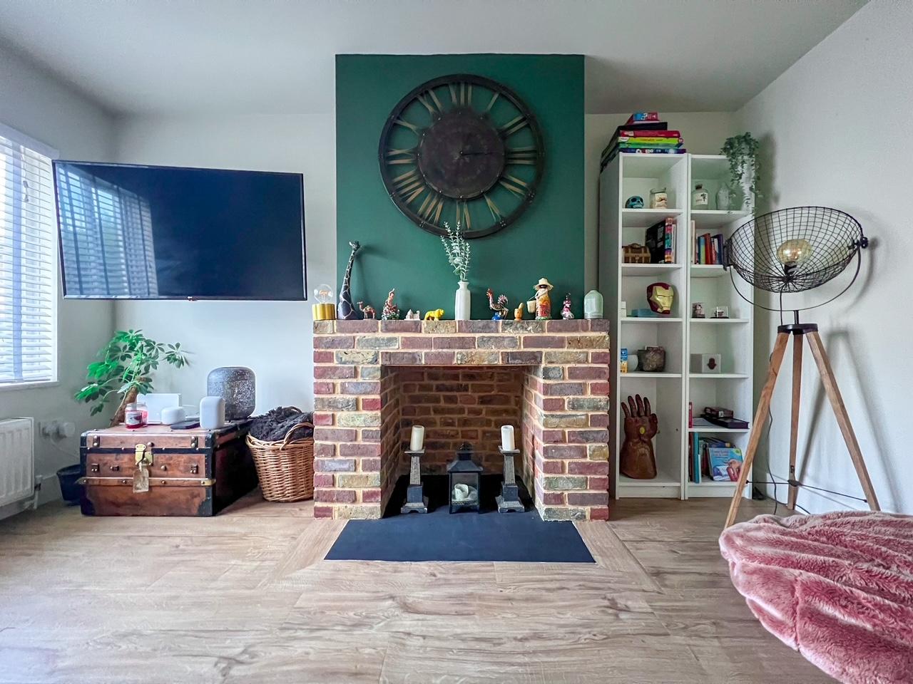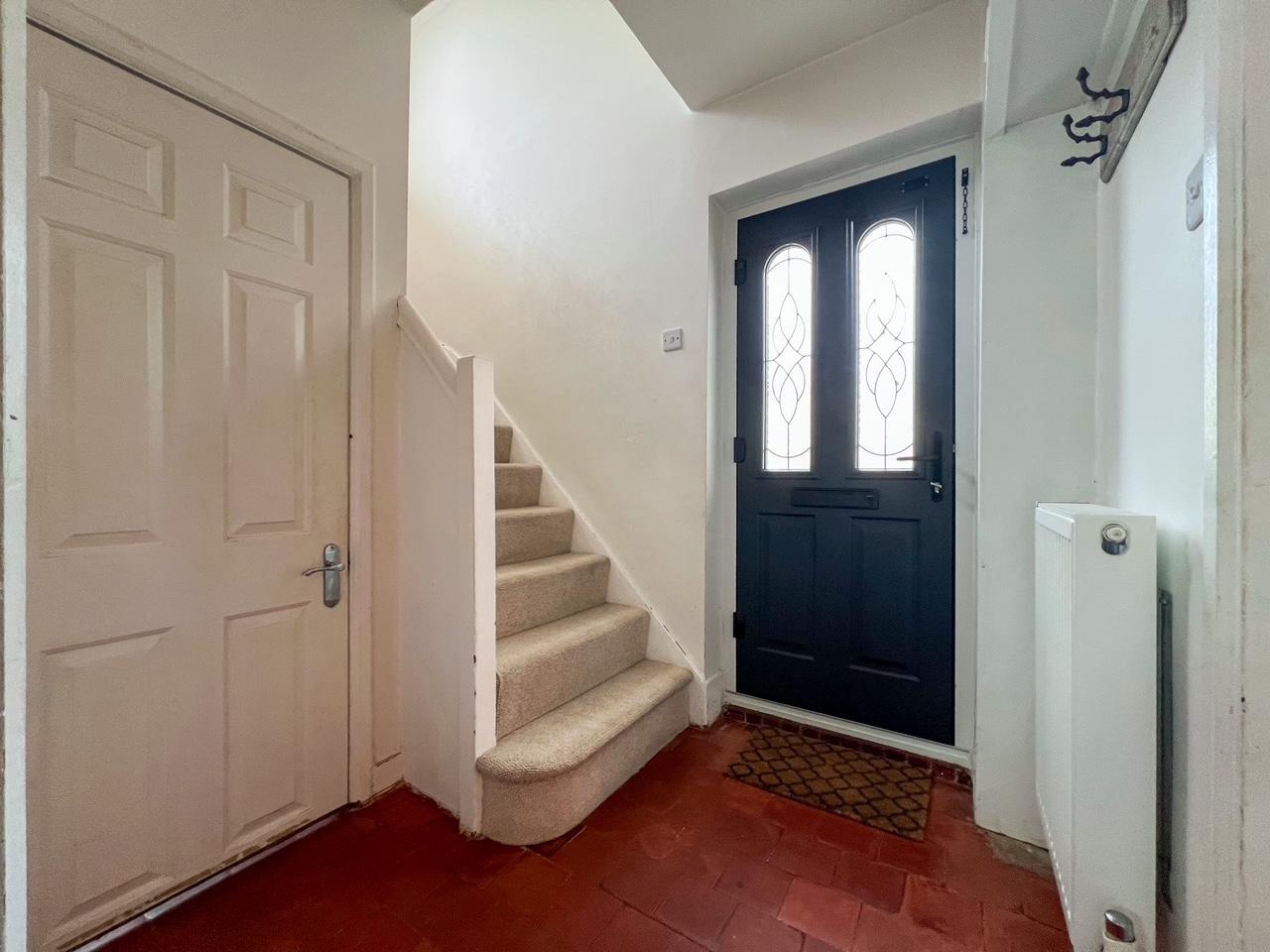The accommodation comprises: an entrance hallway with Quary tiles and access to a downstairs WC. The hallway also leads to a nicely sized front reception room with featured bricked fireplace and laminated wood flooring, the hallway also leads to a second reception room, currently being used as a dining room with again a feature fireplace with window overlooking the rear garden. The dining room with archway opens onto a nicely sized navy blue kitchen with many eye/base level units/cupboards with wood worktops and integrated oven with gas hob along with space for dishwasher and American style fridge/freezer. A separate lean to conservatory/utility room complements the kitchen with ample hanging space for coats and hats with French doors opening out onto the rear garden. Turning stairs lead to a landing with storage cupboard and access to three nicely balanced bedrooms along with a newly updated bathroom with white suite.