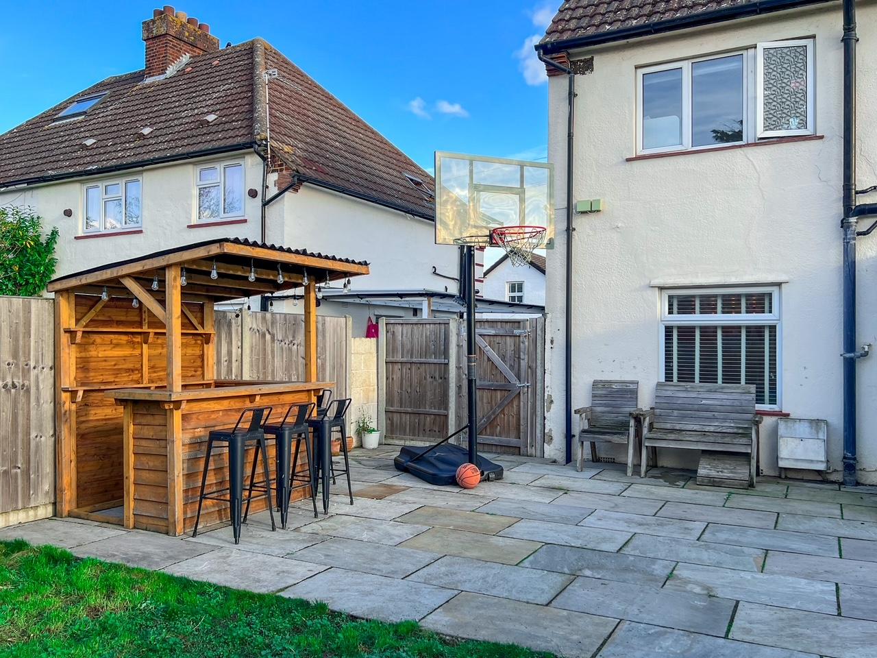 Externally there is a circa 55ft much improved westerly facing garden with Indian sand stone paving, lawn area with new fencing and side access gate. To the front there is a large driveway with shingle stones providing ample of off road parking for 2 or 3 cars. Other benefits include; UPVC double-glazing and gas central heating. (EPC rating: D) Elmbridge Borough Council = Band D