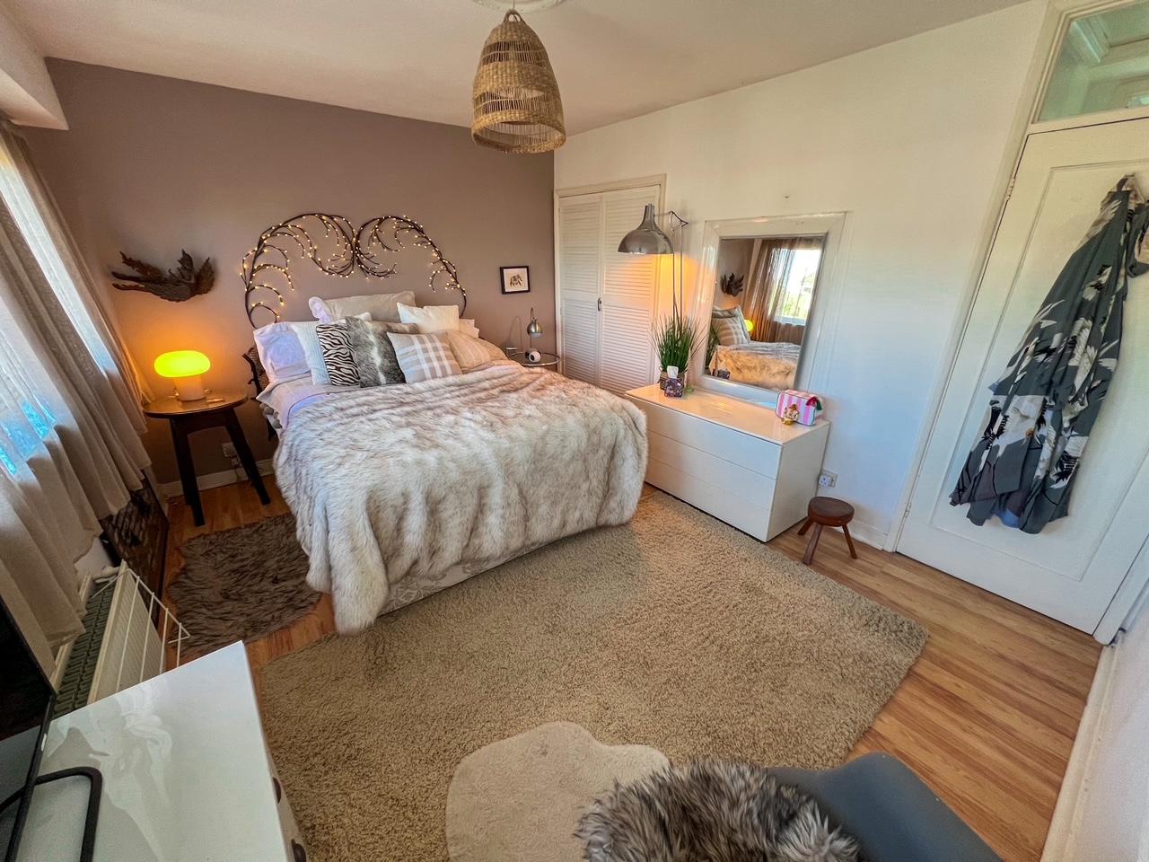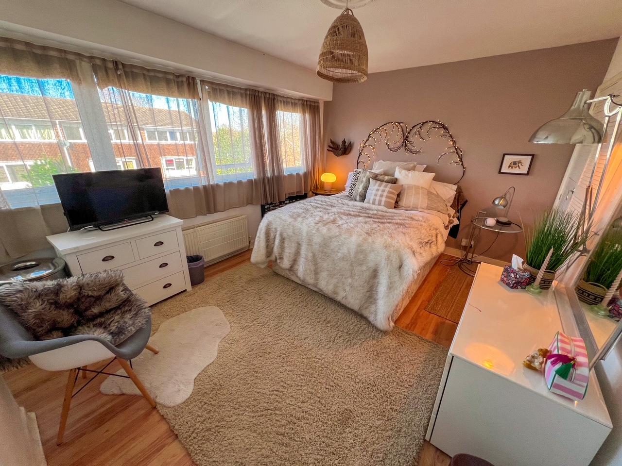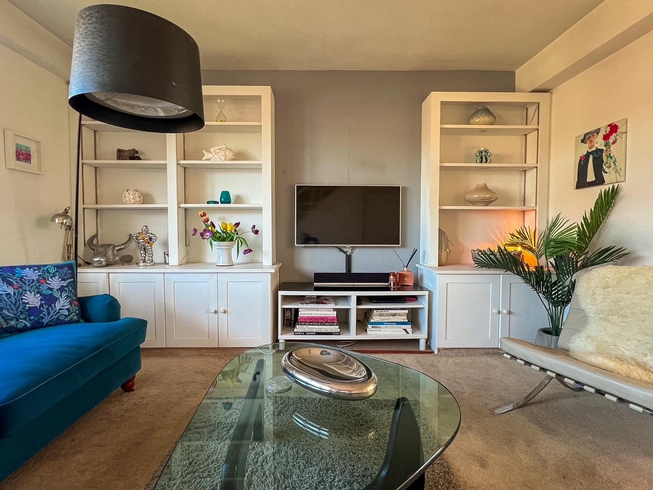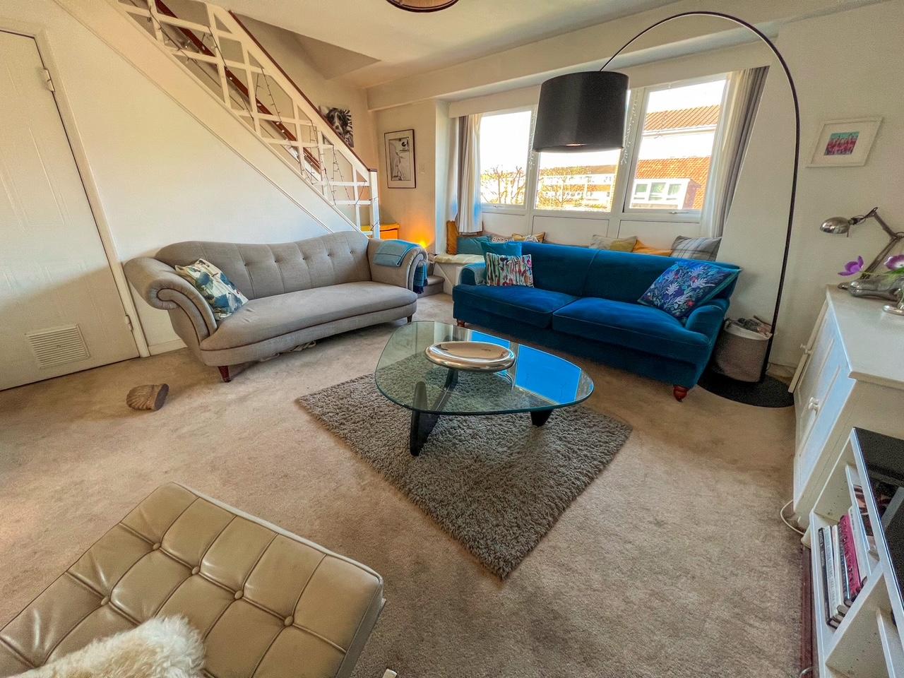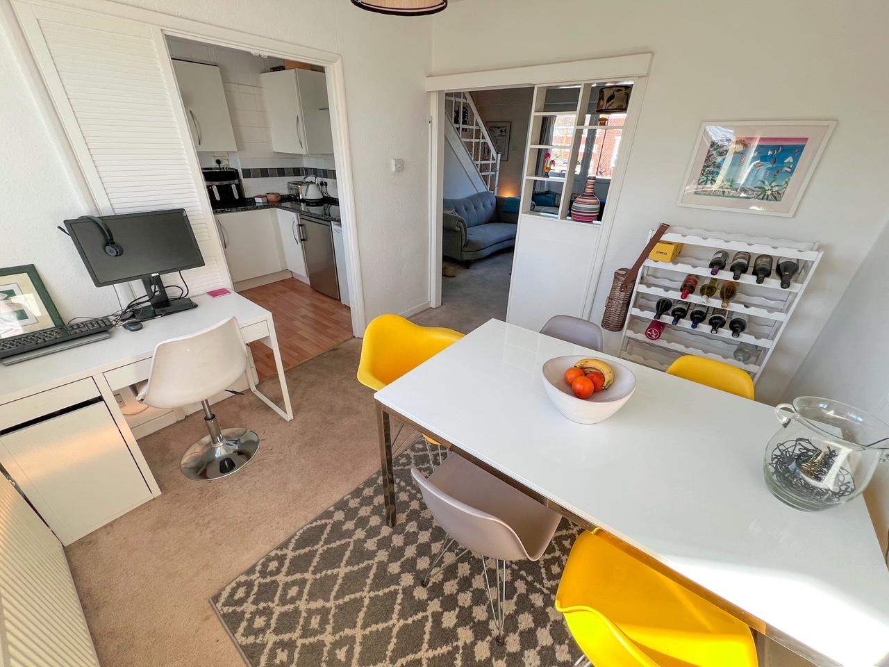 The accommodation comprises; a private entrance with hallway leading to a landing with door opening to an impressive and 13’9 x 13’5 very spacious and bright living room with built in window seat. The living room leads onto a nicely sized dining room with built in shelving and cupboards which enjoys wonderful southerly views and leads to a kitchen with many eye/base level units/cupboards with worktop area and space for freestanding cooker with gas hob, washing machine, fridge and freezer.