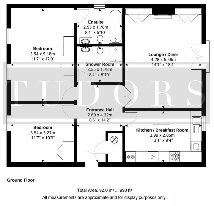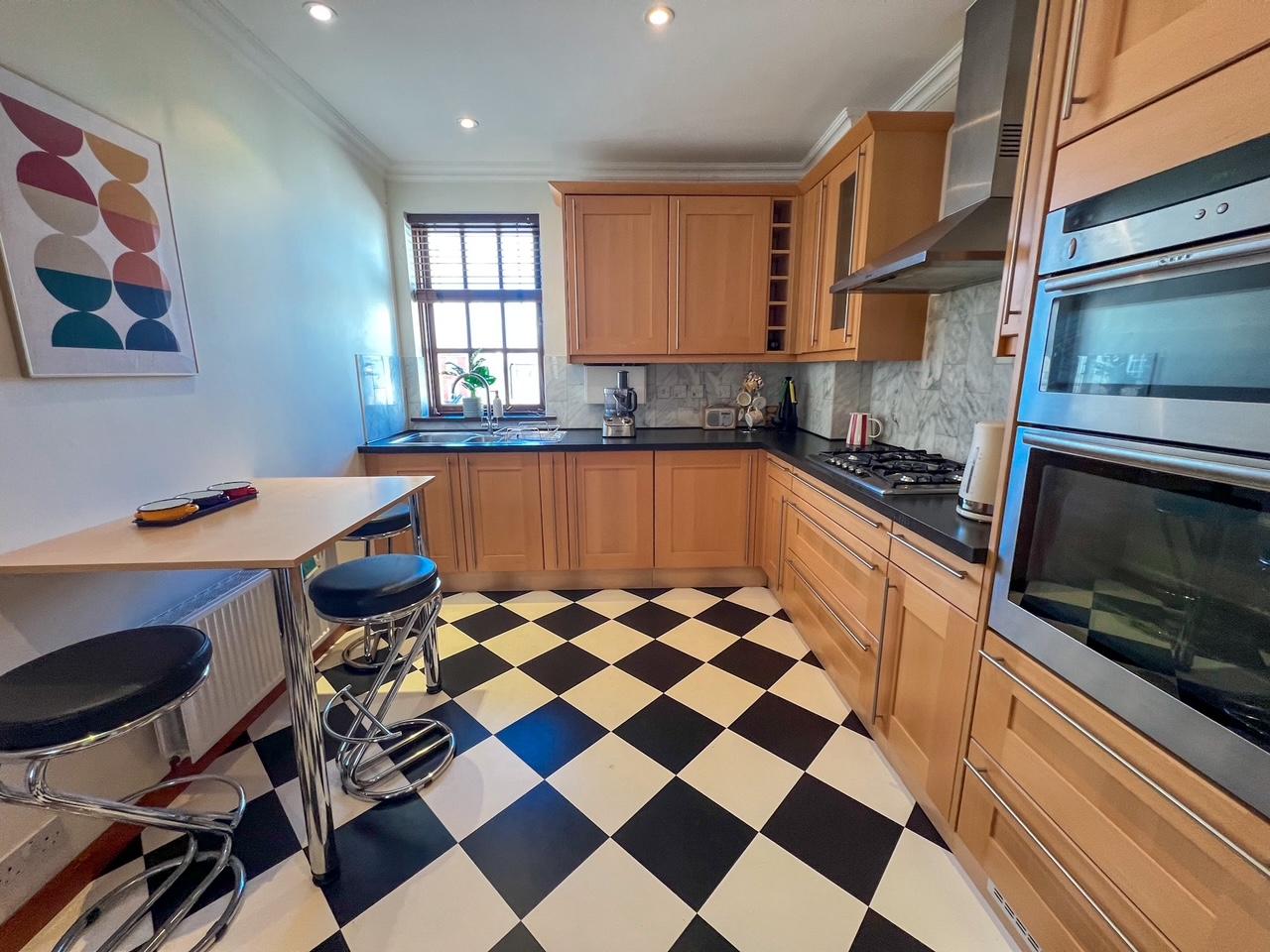 The accommodation comprises; a grand entrance hallway with shoe and coats cupboard which leads to all rooms, French doors open into an impressive living room with front aspect windows and Juliet French doors which enjoy wonderful views over Bridge Road and up to Hampton Court train station – giving a real feeling that you are in the heart of Hampton Court village. The hallway also leads to a nicely sized modern kitchen with breakfast bar and worktops and integrated appliances including, oven, microwave, gas hob, dishwasher and fridge/freezer. Two impressive double bedrooms, master bedroom with built in sliding mirrored wardrobes and a brand new luxury en-suite bathroom. Further separate brand new main shower room with WC and sink can be accessed via the hallway.