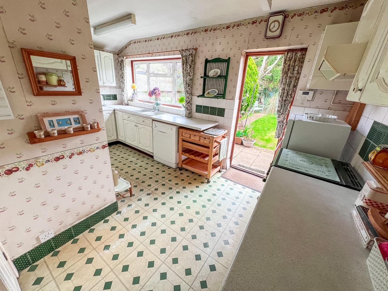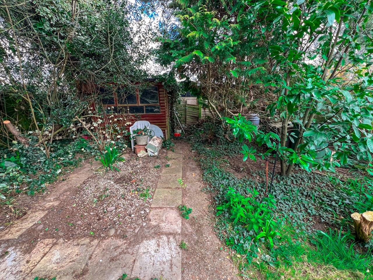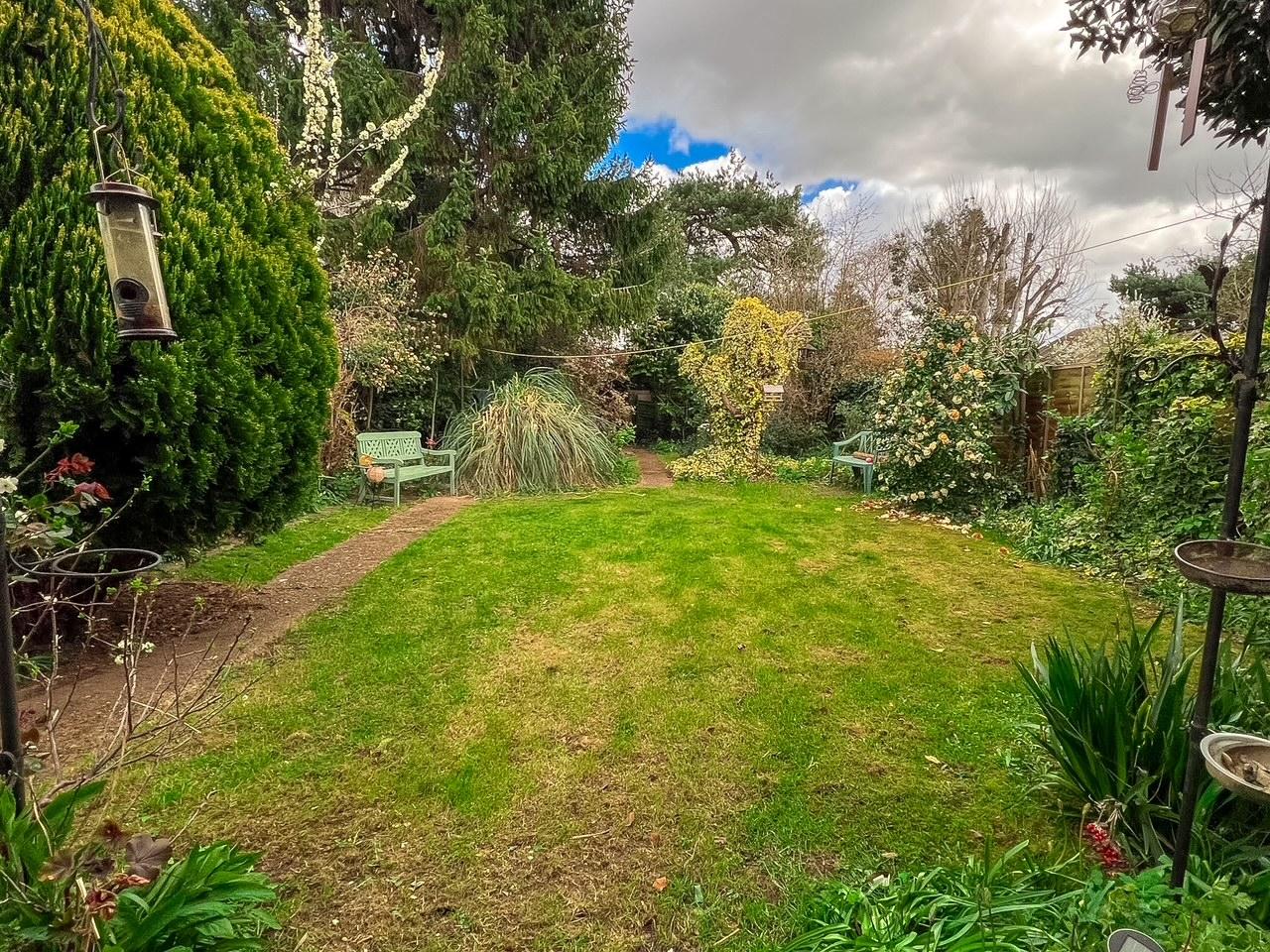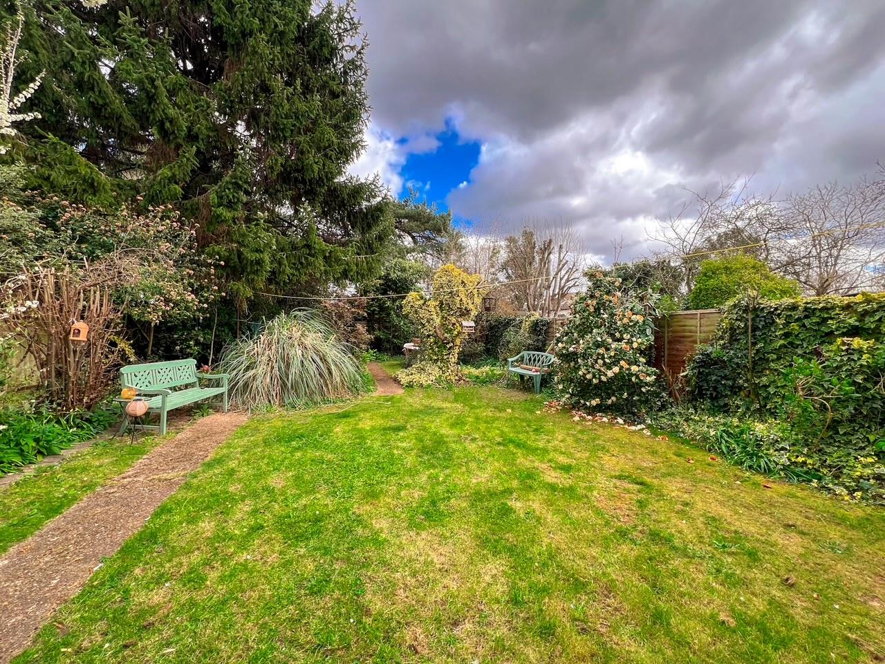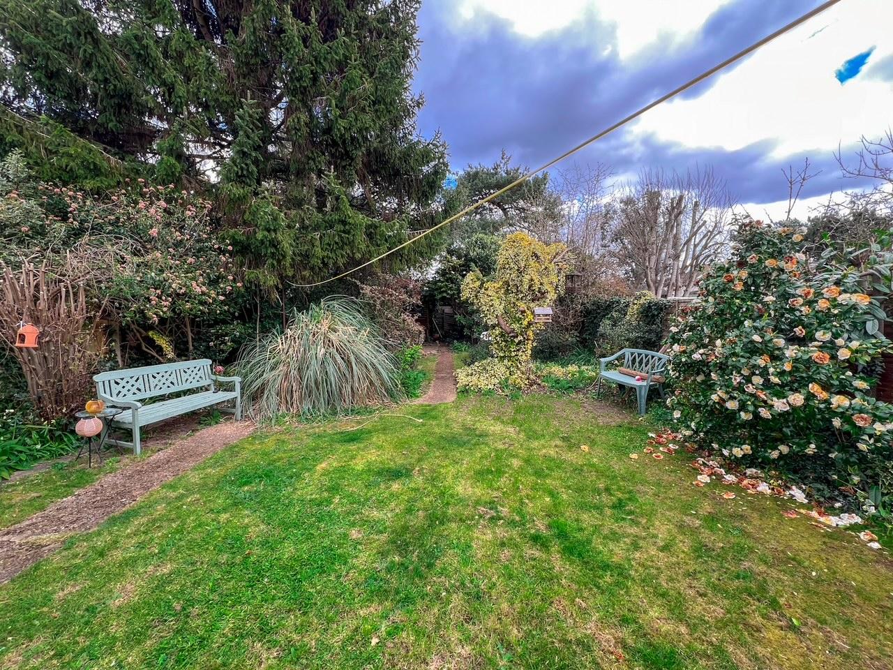 Externally there is a well presented large garden which has a lawn area and well stocked border plants including mature trees and an abundance of bushes which adds to the privacy. At the end of the garden you will find a timber built shed and to the side of the property there is a side access which has a decorative wrought iron gate. To the front there is a driveway providing off road parking for two cars and a pretty garden with lawn and mature plants and bushes. The driveway leads to an attached garage with power and light and double doors that open outwards. Other benefits include; double-glazing and gas central heating. EPC rating = . Elmbridge Borough Council: Band E.