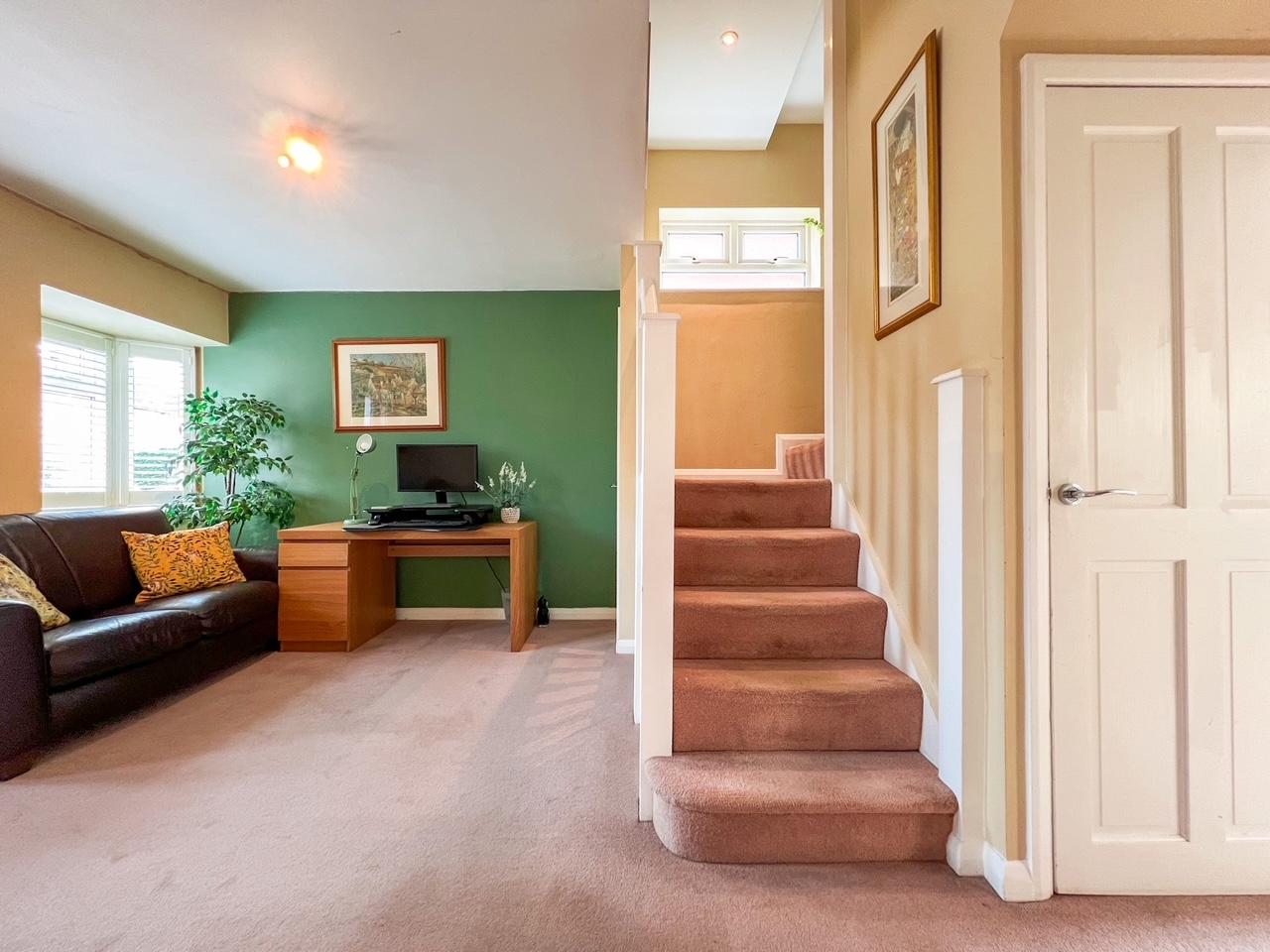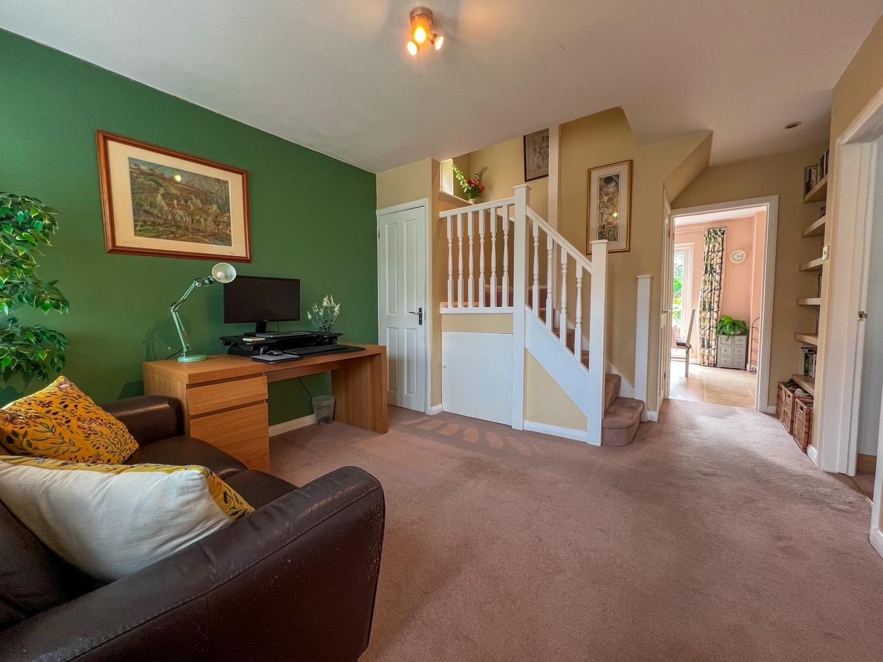 The property is instantly appealing, with attractive matching front bay windows, a practical lobby entrance, and a generous block-paved driveway providing ample off-street parking for up to 3 cars. Upon entering via the lobby, you are welcomed into a large home office/playroom—an ideal flexible space for remote working, children’s play, or additional reception use.