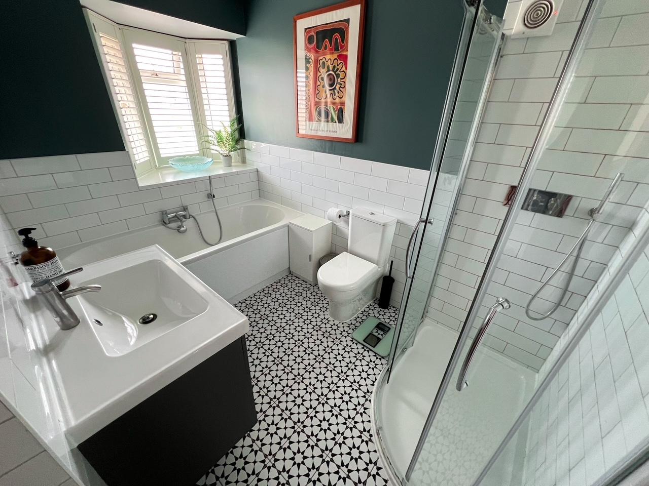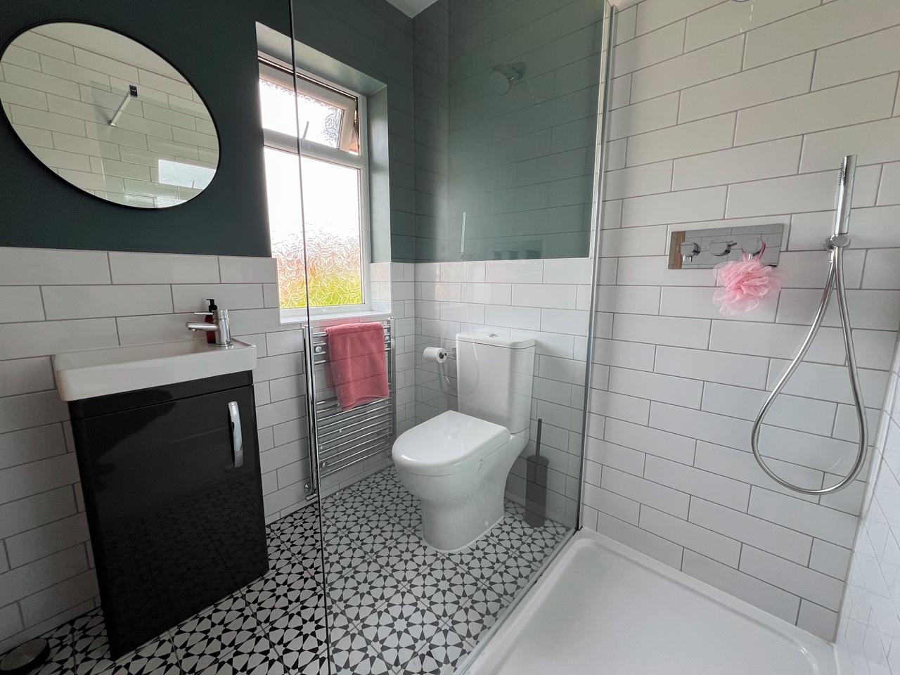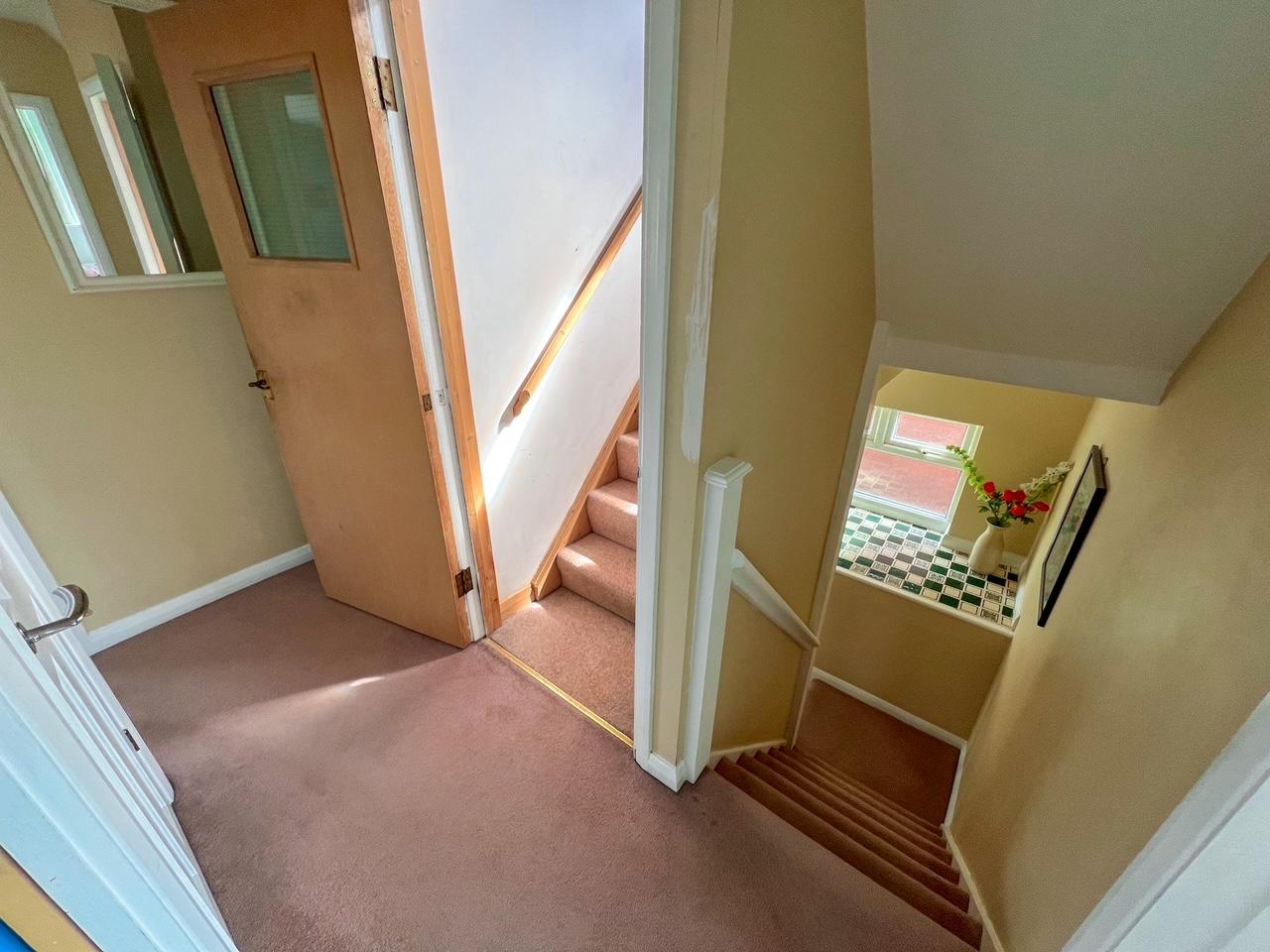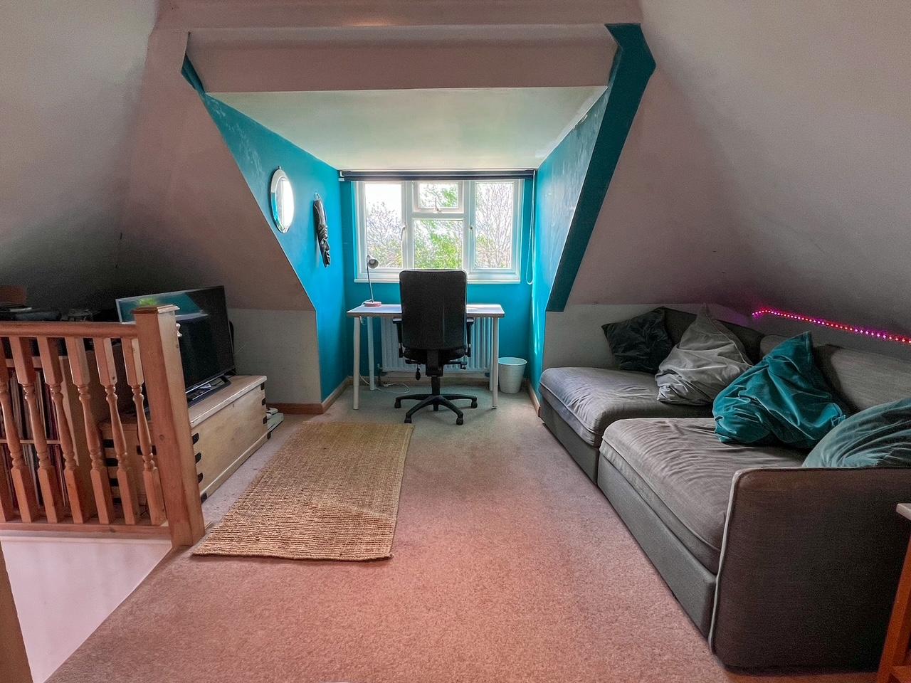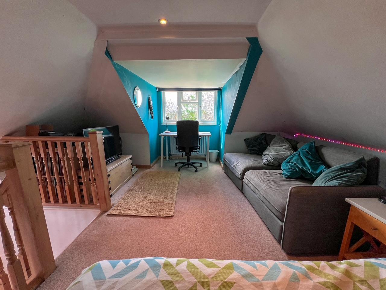 Upstairs, there are four good-sized bedrooms, including a principal bedroom with its own en suite, alongside a modernised family bathroom finished to a high standard. From the landing, turning stairs lead up to a large loft bedroom, enhanced by Velux windows which flood the space with natural light, creating a bright and airy room.