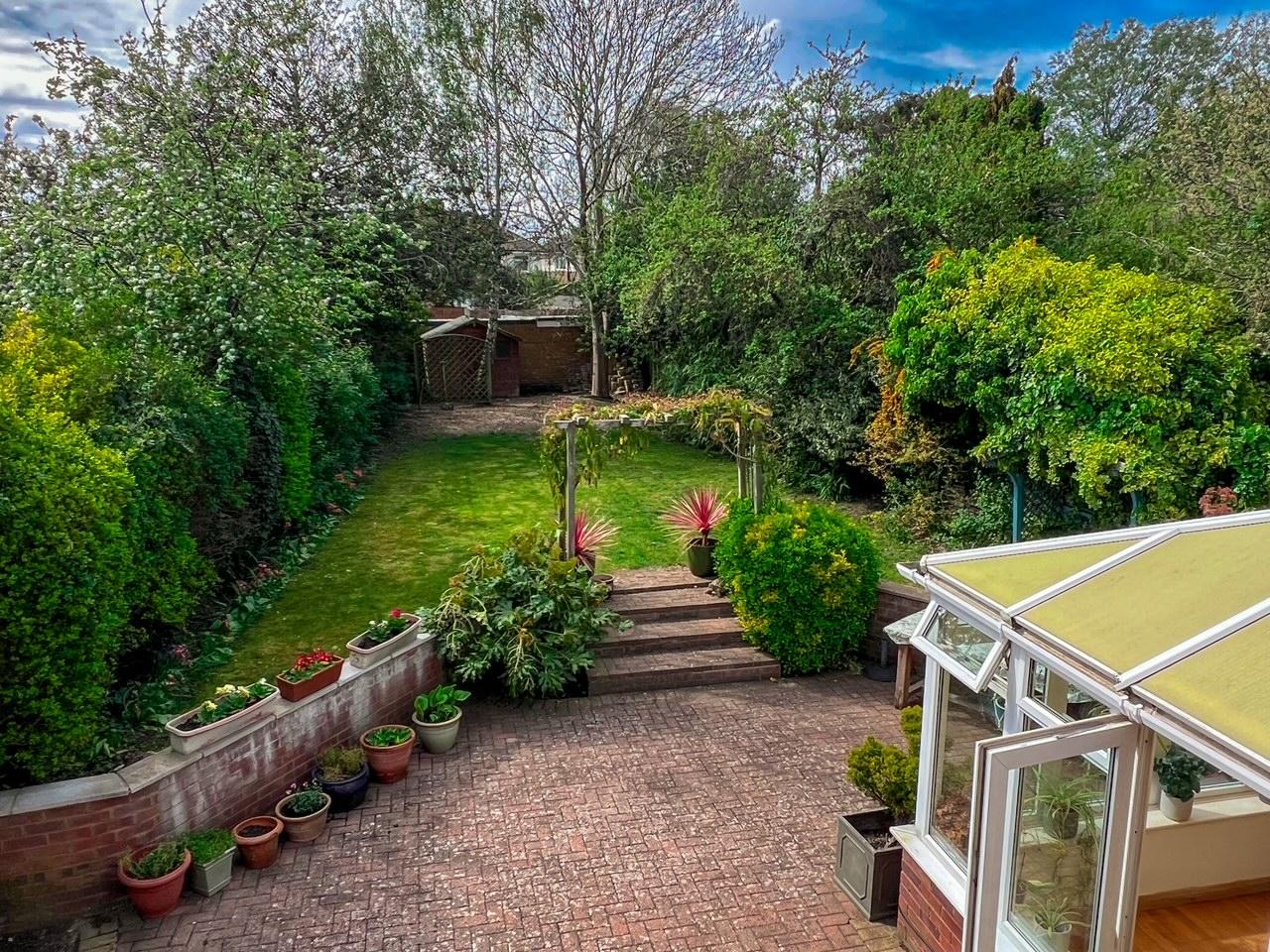 To the rear, the property boasts a superb approximately 100 ft westerly-facing garden, featuring a block-paved patio area with steps leading up to a lawn, bordered by well-stocked mature plants and trees which provide a high degree of privacy. The garden also benefits from a large shed positioned at the rear, offering excellent storage. Overall, it is perfect for enjoying afternoon and evening sun, with plenty of space for outdoor dining, play, or relaxation. Other benefits include: Double-glazing and gas central heating. EPC rating: D. Council tax: F