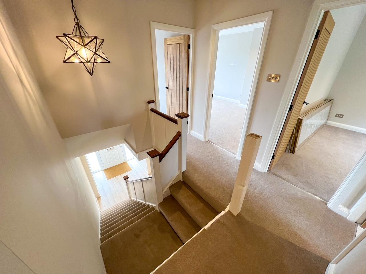 Stairs from the hallway lead to a nicely sized landing with bespoke glass balustrades (to be completed) with centre piece chandelier. The landing leads to four impressive double bedrooms, one with luxury en-suite shower room and a further modernised bathroom with white suite.