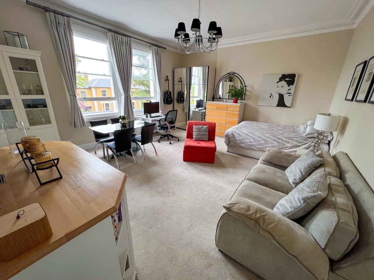 The accommodation comprises; an entrance hallway, a large studio apartment with living and dining space, along with a home office area, bedroom area with built in wardrobes. There is also a modern kitchen with eye/base level units/cupboards with wonderful views from the window over the road and a modernised bathroom with white suite. The property also benefits by having a carpeted storage area which is of a large size.