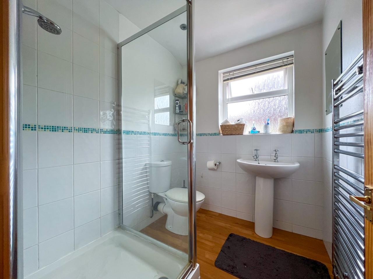 Stairs from the hallway, lead up to a landing with access to three bedrooms and a recently fitted, modern bathroom with white suite with shower and separate bath.